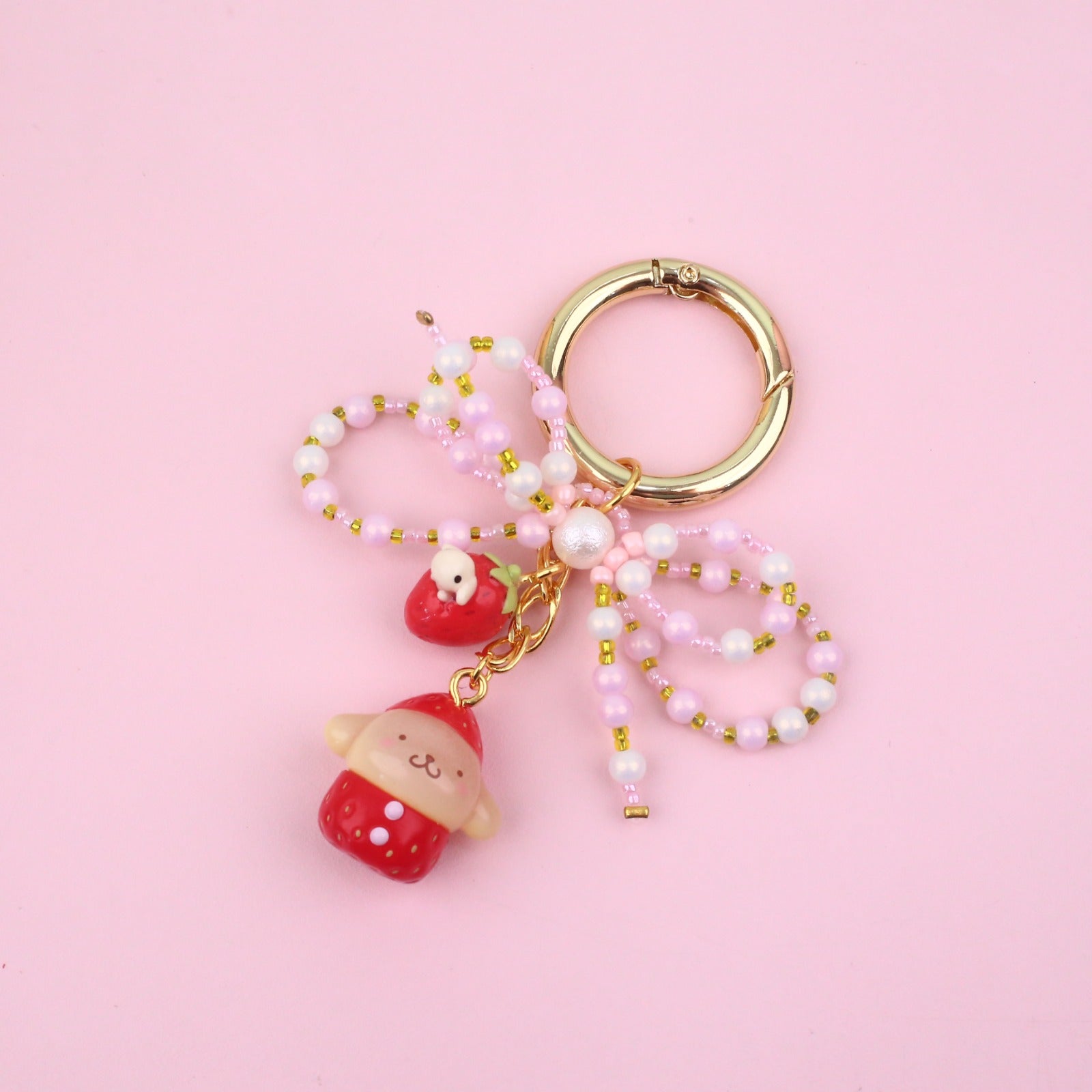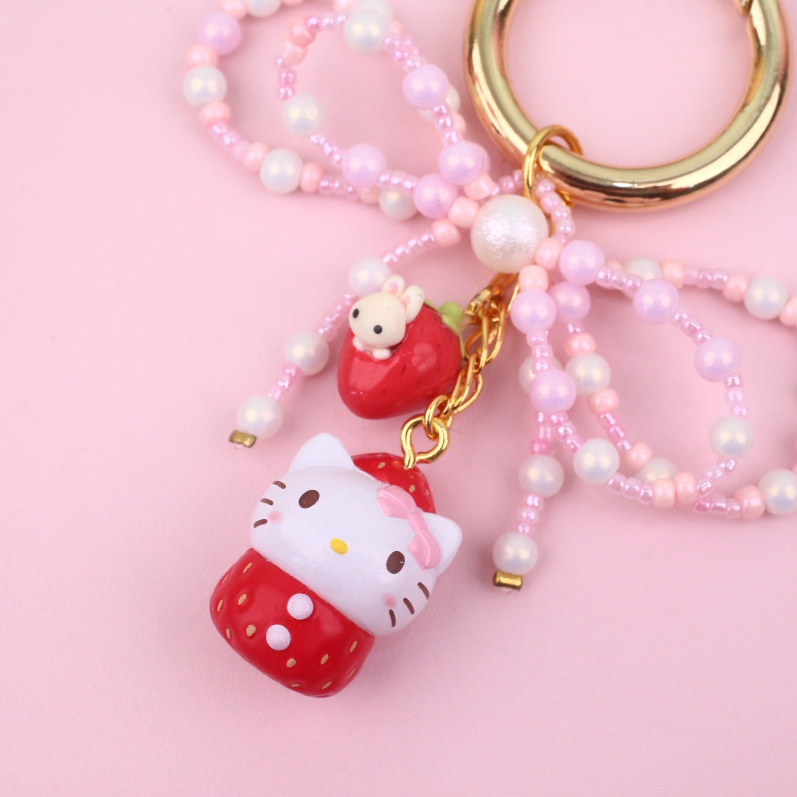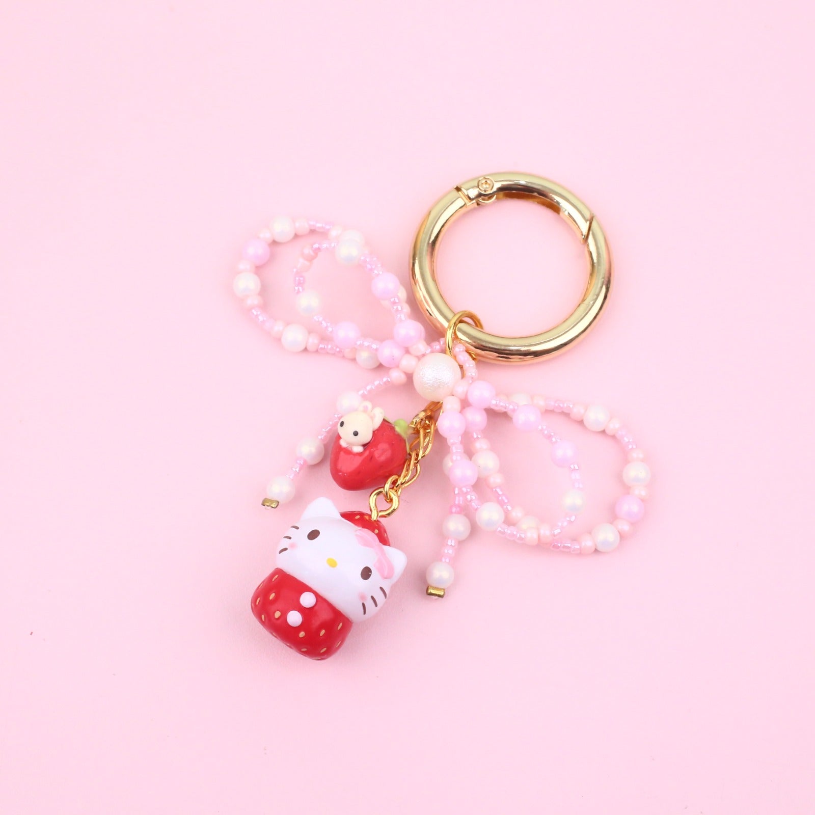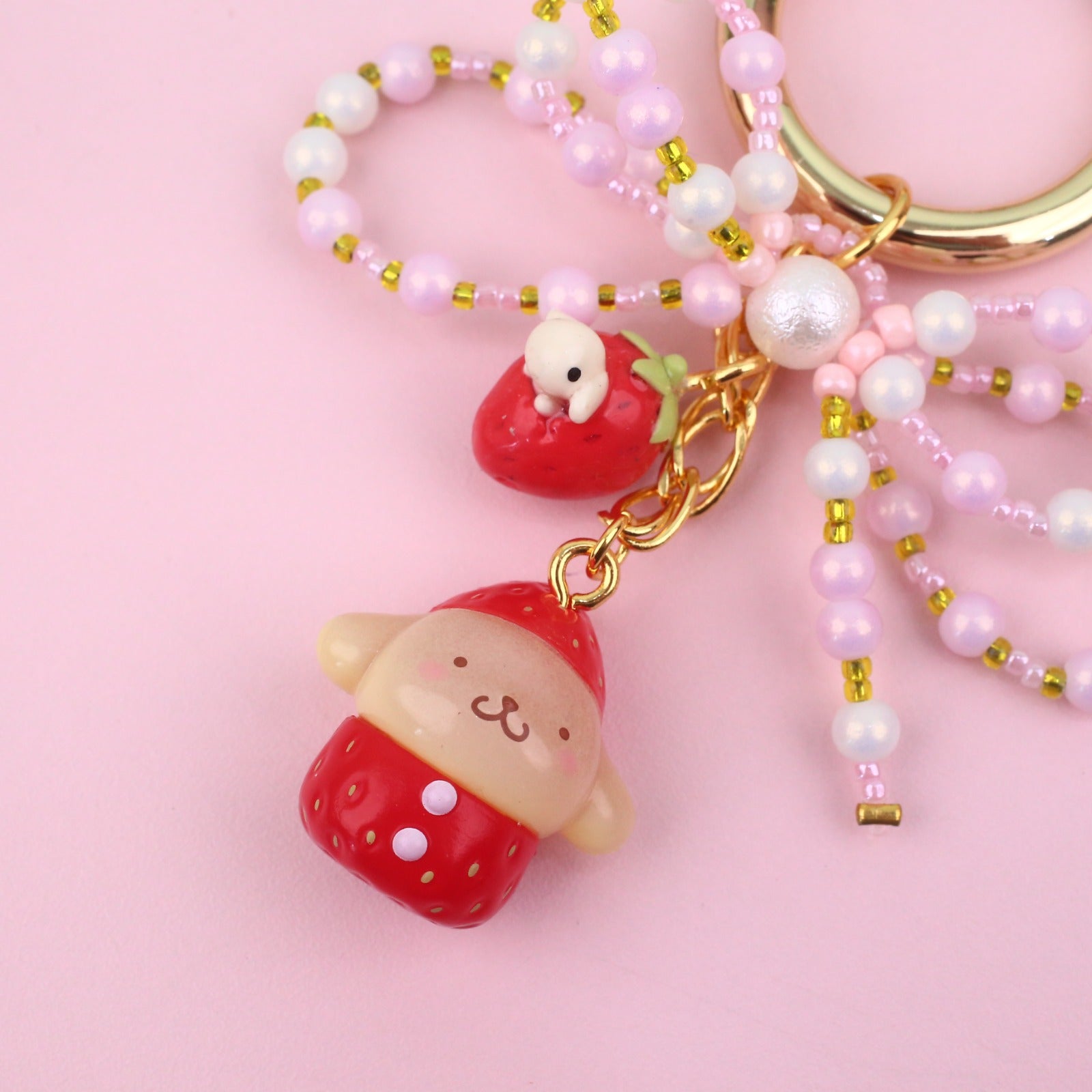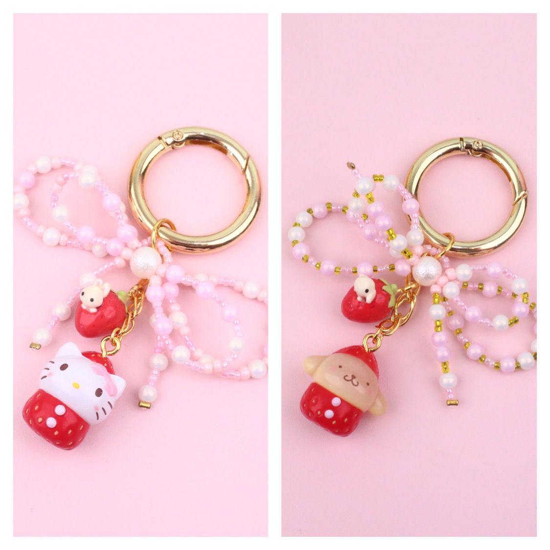 Carry a sprinkle of sweetness wherever you go with this adorable strawberry Sanrio character keyring from the Jasmine Tease collection. Featuring your favorite cute characters in charming strawberry-themed designs, this playful accessory adds a pop of personality to your keys, bag, or backpack. Perfect for collectors and Sanrio fans alike, it's the ideal way to keep your essentials organized while spreading joy and whimsy. A delightful little companion that brings smiles every single day.